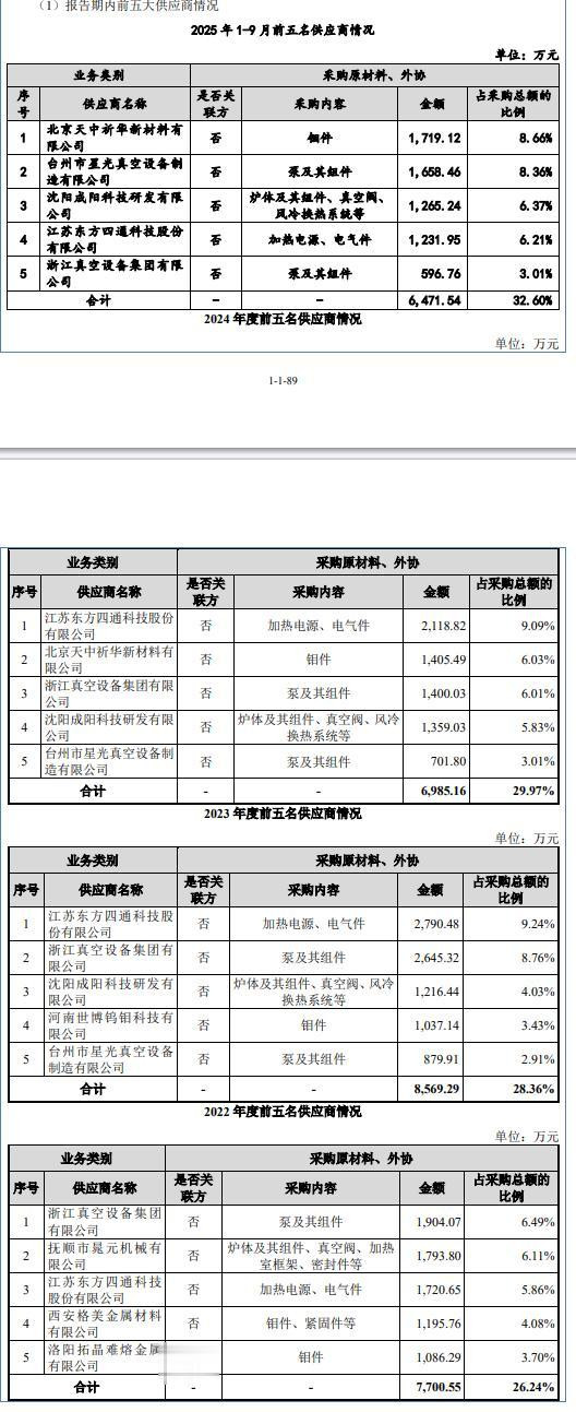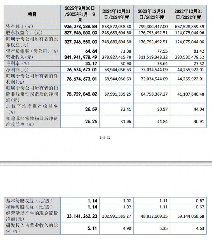 报告期内(2022年至2025年三季度),广泰真空的营业收入分别为2.81亿元、3.12亿元、3.79亿元、3.42亿元;净利润分别为4425.59万元、7303.45万元、6894.41万元、7667.47万元。